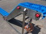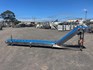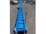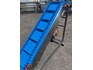 Stainless steel incline cleat conveyor. Food grade belt 250mm wide cleats 50mm high cleats 280mm between cleats 4.1 horizontal section Incline section 1.6m Horizontal section at top 700 mm long Overall length 6.1 m Mounted on wheels 1.4 m discharge height Sew geared drive 0.37kw 29 rpm