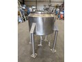 Stainless Steel (SS304) Jacketed Kettle - 400Litre Robust SS304 stainless steel jacketed kettle with an approximate 400L capacity, suitable for heating, cooking, and processing a wide range of liquid and semi-viscous products. Powered by a 5HP, 415V drive system operating at 36 RPM, providing reliable and consistent agitation. The vessel features multiple process ports on the top for filling, venting, and instrumentation, along with a bottom discharge outlet for efficient product removal. Overall Dimensions: 2.8m (H) x 1.1m (W) Ideal for food, beverage, pharmaceutical, and industrial processing applications requiring controlled heating and dependable mixing. Located in our Laverton North Warehouse