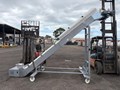 Cleated incline conveyor. All stainless steel frame with a food grade cleated belt. Cleats are 75mm high 280mm wide belt x 2.1m incline section and 800mm flat section. Height from ground to loading hopper is 900mm Height from ground to belt discharge is 2.2m Height from ground to the bottom of the outlet hopper is 1.7m. Mounted on castor wheels. SEW 0.55kw 31 rpm geared motor. Ex Confectionery plant.
